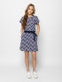 Sukienka dziewczęca o luźniejszym kroju, z okrągłym dekoltem, długością powyżej kolan, opuszczonymi ramionami, wykonana z tkaniny w paski. Materiał: 50% bawełna, 50% wiskoza, dzian