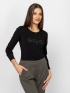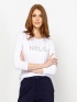 Damska koszulka z długim rękawem, dopasowany krój, okrągły dekolt, z dużym logo marki z przodu. Materiał: 95% bawełna, 5% elastan, dzianina single jersey. Modelka ma 175 cm wzrostu
