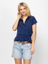 Damska koszulka polo o luźniejszym kroju, z dekoltem w szpic, wykonana z wzorzystego materiału. Materiał: 50% bawełna, 50% wiskoza, dzianina single jersey. Modelka ma 175 cm wzrost