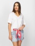 Krótki rękaw, prosty krój i dekolt w szpic. Rękawy sięgające do łokci, z małym logo marki z przodu. Materiał: 100% bawełna slub jersey. Modelka ma 175 cm wzrostu i nosi rozmiar S.