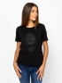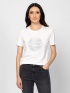 Damska koszulka z krótkim rękawem o prostym kroju, z okrągłym dekoltem, z przodu ozdobiona kamieniami i małym metalowym brandingiem z tyłu. Materiał: 50% bawełna, 50% modal, single