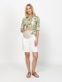Szorty damskie o regularnym kroju, długości powyżej kolan, wykonane z materiału imitującego len. Elastyczny pas, imitacja kieszeni z tyłu. Skład: 65% bawełna, 35% wiskoza. Modelka