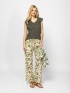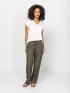 Długie spodnie damskie z szerokimi nogawkami. Proste kieszenie, elastyczny regulowany pas. Materiał: 100% wiskoza. Modelka ma 175 cm wzrostu i nosi rozmiar S.