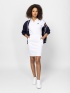 Sukienka damska typu polo z kołnierzykiem zapinanym na guziki, długością powyżej kolan, krótkimi rękawami, opuszczonymi ramionami i kieszeniami z przodu. Materiał: 97% bawełna, 3%
