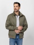 Męska kurtka w stylu bomberki, z stójką, prążkowanym dołem i mankietami, kieszeniami zapinanymi na zamek błyskawiczny oraz wewnętrzną kieszenią zapinaną na zamek błyskawiczny. Materiał: 100% bawełna skośna. Model ma 188 cm wzrostu i nosi rozmiar L.