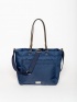 Damską torbę na ramię z jedną przegrodą, zamknięciem na zamek błyskawiczny, kieszenią na zamek błyskawiczny z przodu, kieszeniami wewnętrznymi, odpinanym dodatkowym paskiem na ramię, metalowym logo marki z przodu, wykonaną z ozdobnego błyszczącego materiału z detalami ze sztucznej skóry. Wymiary: 37 x 43 x 16 cm. Materiał: 100% poliester, podszewka: 100% poliester.