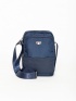 Męska torba boczna z jedną komorą, zamknięciem na zamek błyskawiczny, kieszenią z zamkiem błyskawicznym z przodu, kieszenią na rzep z tyłu, kieszeniami wewnętrznymi, regulowanym paskiem na ramię z logo i małym logo marki z przodu. Wymiary: 25 x 17 x 6 cm. Materiał: 100% poliester, podszewka: 100% poliester.