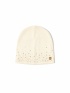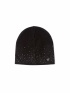Damska czapka z dzianiny z ozdobą z kamieni wokół krawędzi i małym metalowym logo marki. Materiał: 100% akryl.