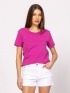 Damska koszulka z krótkim rękawem o prostym kroju, z okrągłym dekoltem, cekinowym brandingiem z przodu, wykonana z czystej bawełny. Materiał: 100% bawełna, slub jersey. Modelka ma 175 cm wzrostu i ma na sobie rozmiar S.Mniej informacji