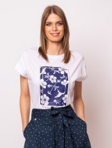 Ta damska koszulka jest idealnym dodatkiem do wiosenno-letnich zestawów dzięki wygodnemu krojowi. Prosty krój, okrągły dekolt, stylowa, drukowana grafika i mały branding sprawią, że Twój strój będzie wyjątkowy. Wykonany z wygodnej mieszanki bawełny, jest idealny do noszenia przez cały dzień. Wybierz spośród naszych stylowych spodni i spódnic z nowej kolekcji! Materiał: 50% bawełna, 50% modal, single jersey. Modelka ma 175 cm wzrostu i nosi rozmiar M.