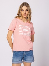 Damska koszulka z krótkim rękawem o prostym kroju, z okrągłym dekoltem, dużym nadrukiem z motywem żaglówki z przodu, wykonana z czystej tkaniny bawełnianej. Materiał: 100% bawełna,
