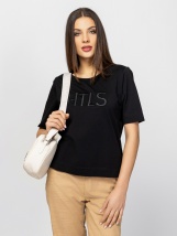 Damska koszulka z krótkim rękawem, wykonana z wysokiej jakości bawełny, z okrągłym dekoltem i rękawami sięgającymi do łokci. Haftowana i ozdobiona perełkami z przodu. Materiał: 100% bawełna. Modelka ma 175 cm wzrostu i nosi rozmiar S.