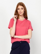 Koszulka damska z krótkim rękawem, regularny krój, okrągły dekolt, wykonana z wysokiej jakości bawełny, haftowana dekoracja z przodu z nadrukowanym logo marki. Materiał: 100% baweł