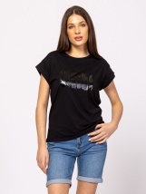 Damska koszulka z krótkim rękawem o prostym kroju, z opadającymi ramionami, rękawami z klapami, wykonana z czystej bawełny, z nadrukowanym logo marki z przodu. Materiał: 100% baweł