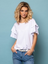 Jeśli jesteś w nastroju na romantyzm, wybierz ten damski T-shirt! Dzięki prostemu krojowi, falbaniastym rękawom, miękkiej mieszance bawełny i małemu brandingowi, sprawi, że Twój wygląd będzie zabawny i stylowy. Materiał: 50% bawełna, 50% modal, single jersey. Modelka ma 175 cm wzrostu i nosi rozmiar M.