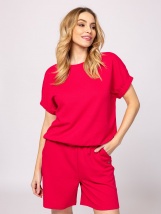 Damska koszulka z krótkim rękawem o szerszym kroju, z obniżonym ramieniem, okrągłym dekoltem, elastycznymi rękawami i dołem, małym metalowym logo z tyłu. Wybierz pasujące spodnie ZURA lub spódnicę NAKARA. Materiał: 58% poliester, 40% wiskoza, 2% elastan, dżersej. Modelka ma 175 cm wzrostu i ma na sobie rozmiar S.