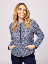 Damska kurtka pikowana zapinana na zamek z ciekawymi wzorami, wygodny, ale kobiecy krój, kieszenie ze ściągaczem, wewnętrzna klapa przeciwwiatrowa, mały branding na rękawie. Materi