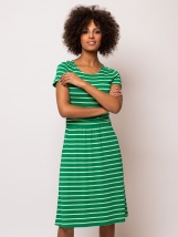 Ta damska sukienka to idealna propozycja na lato! Lekko dopasowany i wygodny krój wygląda dobrze na każdej sylwetce. Krótkie rękawy, długość poniżej kolan, ozdobne wcięcie w talii,