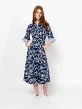 Sukienka koszulowa damska z rękawami 3/4, długością do kostek i zapięciem na guziki. Regulowana talia za pomocą paska, kieszenie boczne i niewielkie logo marki z tyłu. Materiał: 65% bawełna, 30% poliester, 5% elastan. Modelka ma 175 cm wzrostu i nosi rozmiar S.Mniej informacji