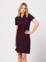 Damska sukienka tenisowa z krótkim rękawem, zapięciem na guziki i kołnierzykiem, modny wzór, krój przed kolano, branding na rękawach, elastyczny bawełniany materiał. Materiał: 95% bawełna, 5% elastan, single jersey. Modelka ma 175 cm wzrostu i nosi rozmiar S.