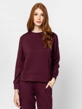Sweter damski o luźnym kroju, okrągły dekolt, opadające ramiona, dół i mankiety wykonane z tkaniny własnej, łatwej w pielęgnacji, zatrzaski z logo z przodu, małe nadrukowane logo marki z tyłu. Materiał: 56% modal, 38% poliester, 6% elastan. Modelka ma 175 cm wzrostu i nosi rozmiar S.