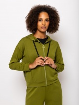Damska bluza z kapturem zapinana na zamek, szerszy krój, obniżone ramiona, kieszenie w linii cięcia, modne kolory, mały branding na rękawie, tkana metka z boku. Noś ją z naszymi spodniami ZELLA24 i ZEDALLA24! Materiał: 50% modal, 44% poliester, 6% elastan. Modelka ma 175 cm wzrostu i nosi rozmiar S.