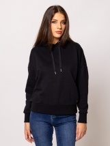 Damska bluza z kapturem, szerszy krój, obniżone ramiona, regulowany sznurkiem kaptur, prążkowane wykończenie dołu i mankietów, w podstawowych kolorach i modnym wzorze, mały metalic