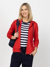 Damska bluza z kapturem i zamkiem błyskawicznym, wykonana z jednolitego materiału w paski. Można ją połączyć z naszymi spodniami FLUMPIS26, FLUMPILONG lub ZAMORKAS26. Materiał: 63%