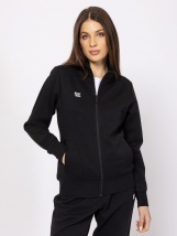 Damska bluza zapinana na zamek, ze stójką, wąski krój, prążkowany dół i mankiety, proste kieszenie, wysoka zawartość bawełny, małe logo marki z przodu i z boku. Materiał: 72% bawełna, 28% poliester. Modelka ma 175 cm wzrostu i nosi rozmiar S.