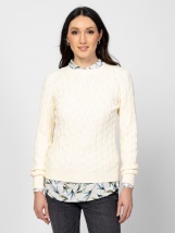 Damski sweter z dzianiny ze skręconym wzorem, okrągłym dekoltem, raglanowymi rękawami, małym logo marki na dole z przodu. Materiał: 49% wiskoza, 28% poliester, 23% nylon, dzianina.