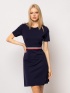 Damska sukienka o eleganckim kroju, w klasycznych kolorach, z małym metalicznym brandingiem u dołu i paskiem w talii. Materiał: 63% wiskoza, 32% nylon i 5% elastan. Modelka ma 175 cm wzrostu i nosi rozmiar S.Mniej informacji