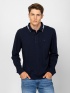 Męska koszulka polo z długim rękawem w modne paski i jednolitym granatowym kolorze, ze stylowym kołnierzykiem zapinanym na guziki, prążkowanymi mankietami, czystą bawełnianą tkaniną, małym tkanym logo marki z przodu i tkaną metką z boku. Materiał: 100% bawełna, pique oxford. Modelka ma 188 cm wzrostu i nosi rozmiar L.Mniej informacji