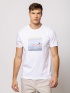 Męska koszulka z krótkim rękawem o prostym kroju, z okrągłym dekoltem, modnym nadrukiem z przodu i małym logo marki z boku. Materiał: 100% bawełna, single jersey. Model ma 188 cm wzrostu i nosi rozmiar L.Mniej informacji