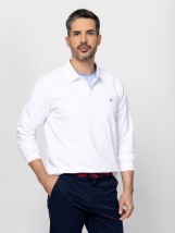 Męska koszulka polo z długim rękawem, o regularnym kroju, z małym logo marki z przodu. Materiał: 75% bawełna, 25% poliester, tkanina typu mini wafel. Model ma 188 cm wzrostu i nosi rozmiar L.