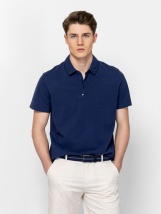 Męska koszulka polo z krótkim rękawem, o regularnym kroju, z kołnierzykiem zapinanym na guziki, z małym metalowym logo marki z przodu. Materiał: 100% bawełna, pike. Model ma 188 cm wzrostu i nosi rozmiar L.