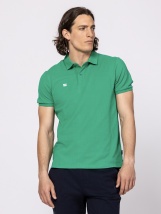 Męska koszulka polo o klasycznym kroju, z bocznym rozcięciem, eleganckim dekoltem zapinanym na guziki i kołnierzykiem, małym nadrukowanym logo marki z przodu, tkaną metką z boku. Dół rękawa zakończony prążkowanym ściągaczem dla wygody noszenia. Materiał: 100% bawełna, pique. Modelka ma 188 cm wzrostu i nosi rozmiar L.