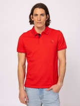 Męska koszulka polo o klasycznym kroju, z bocznym rozcięciem, eleganckim zapięciem na guziki i kołnierzykiem, zapięciem na guziki z logo, małym nadrukiem z przodu, tkaną metką z boku. Dół rękawów zakończony prążkowanym ściągaczem dla wygody. Materiał: 100% bawełna, single jersey. Modelka ma 188 cm wzrostu i nosi rozmiar L.