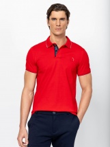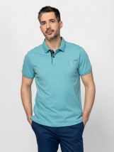 Męska koszulka polo z krótkim rękawem, o regularnym kroju, z kołnierzykiem zapinanym na guziki i małym logo marki z przodu. Materiał: 100% bawełna single jersey. Model ma 188 cm wzrostu i nosi rozmiar L.