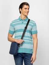Męska koszulka polo z krótkim rękawem, o regularnym kroju i kołnierzykiem z guzikami. Wykonana z tkaniny w paski, z małym logo marki z przodu. Materiał: 100% bawełna, pikowana. Mod