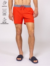 Męskie szorty kąpielowe z szybkoschnącego materiału rozciągliwego w czterech kierunkach, klasyczny krój, jednolity kolor, małe logo marki z przodu i z tyłu, tylna kieszeń na rzep.