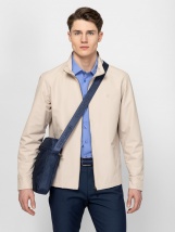 Męska kurtka w stylu bomberki, z podniesionym kołnierzem i mankietami zapinanymi na zatrzaski. Materiał: 100% poliester, skośny splot. Model ma 188 cm wzrostu i nosi rozmiar L.