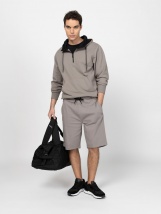 Męskie szorty do biegania o luźnym kroju, z dłuższymi nogawkami, elastyczną talią i sznurkiem. Materiał: 100% bawełna interlock. Model ma 188 cm wzrostu i nosi rozmiar M.