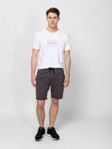 Męskie spodenki do biegania z elastyczną talią ze sznurkiem i kieszenią zapinaną na zamek błyskawiczny. Materiał: 80% bawełna, 20% poliester, cienka dzianina frotte. Model ma 188 cm wzrostu i nosi rozmiar M.