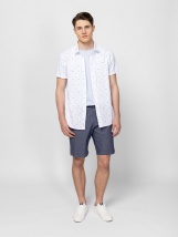 Męskie szorty z płótna o wygodnym kroju, w klasycznym stylu bermudów, z przednimi i tylnymi kieszeniami. Wykonane z wygodnego, elastycznego materiału, pasek nie jest dołączony do szortów. Materiał: 98% bawełna, 2% elastan. Model ma 188 cm wzrostu i nosi rozmiar M.