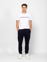 Męskie spodnie dresowe o wygodnym kroju, z prążkowaną nogawką, elastyczną talią regulowaną sznurkiem, bocznymi kieszeniami, tylną kieszenią na suwak, wentylowanym materiałem, małym logo marki z przodu. Wykonane w 76% z bawełny, 19% z poliestru, 5% z elastanu. Model ma 188 cm wzrostu i nosi rozmiar M.