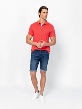 Męskie szorty jeansowe w stylu bermudów z 5 kieszeniami, zapięciem na zamek błyskawiczny i regularnym krojem. Pasek nie jest dołączony do szortów. Materiał: 83% bawełna, 16% polies