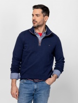 Męska bluza z kołnierzem stójką i zamkiem błyskawicznym przy szyi. Można ją połączyć z naszymi spodniami ZENDY i ZANNER. Materiał: 100% bawełna żakardowa. Model ma 188 cm wzrostu i